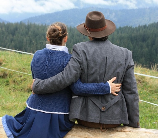 Grooms similarly wore the finest versions of regional men’s Tracht, often featuring special embroidery, silver buttons, or distinctive accessories reserved for weddings and the most formal occasions. In some regions, the groom’s wedding lederhosen or breeches were elaborately decorated with his bride’s or future wife’s initials, intertwined hearts, or symbols of prosperity and fertility.